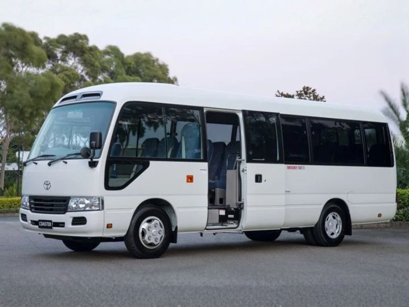 - Toyota Coaster 24 chỗ: Toyota Coaster nổi bật với thiết kế sang trọng, nội thất hiện đại và động cơ mạnh mẽ. Xe được trang bị hệ thống điều hòa tốt, ghế ngồi thoải mái và nhiều tính năng an toàn như cảm biến lùi, hỗ trợ lái.